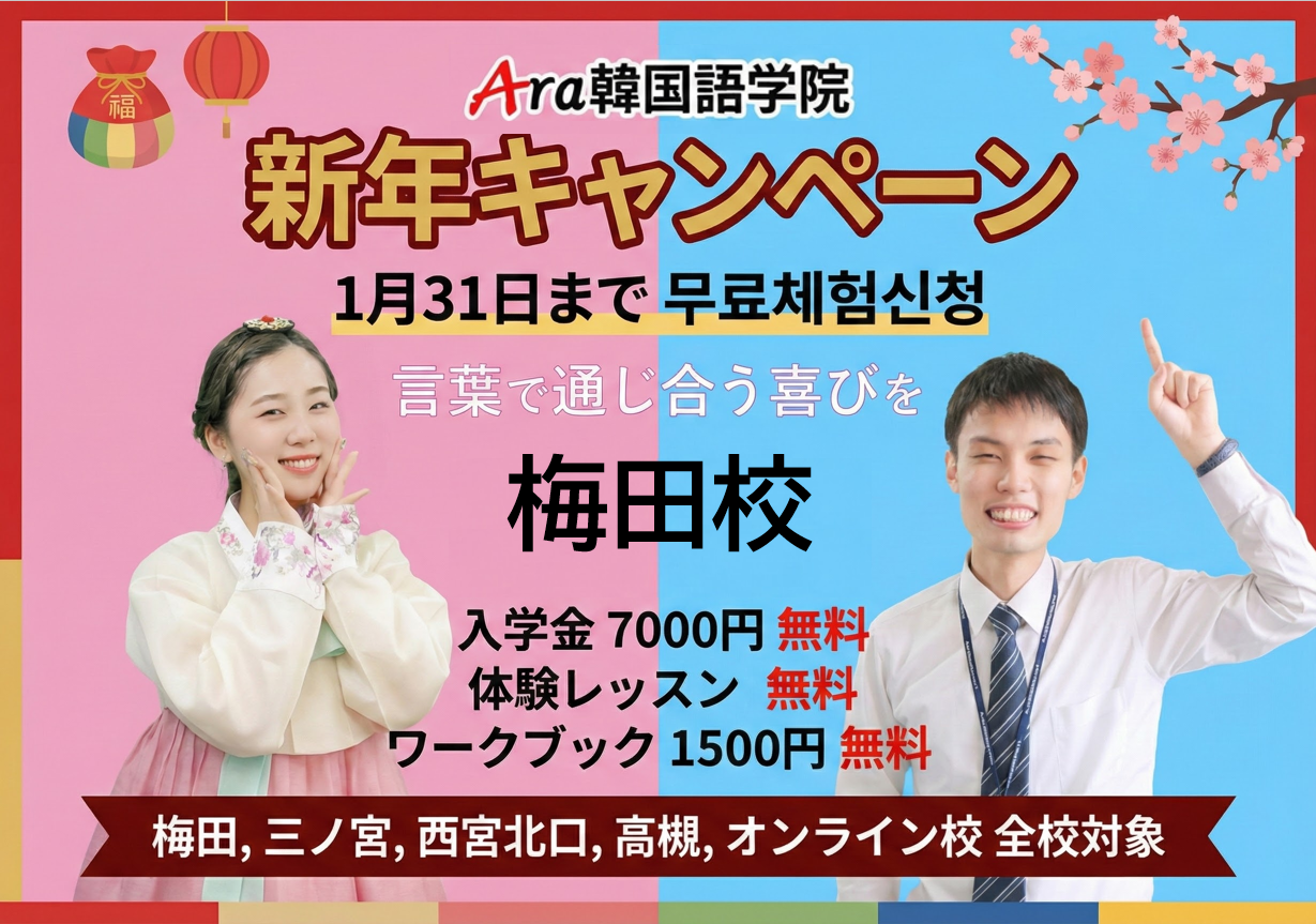 大阪Ara韓国語学院「梅田校」へようこそ。